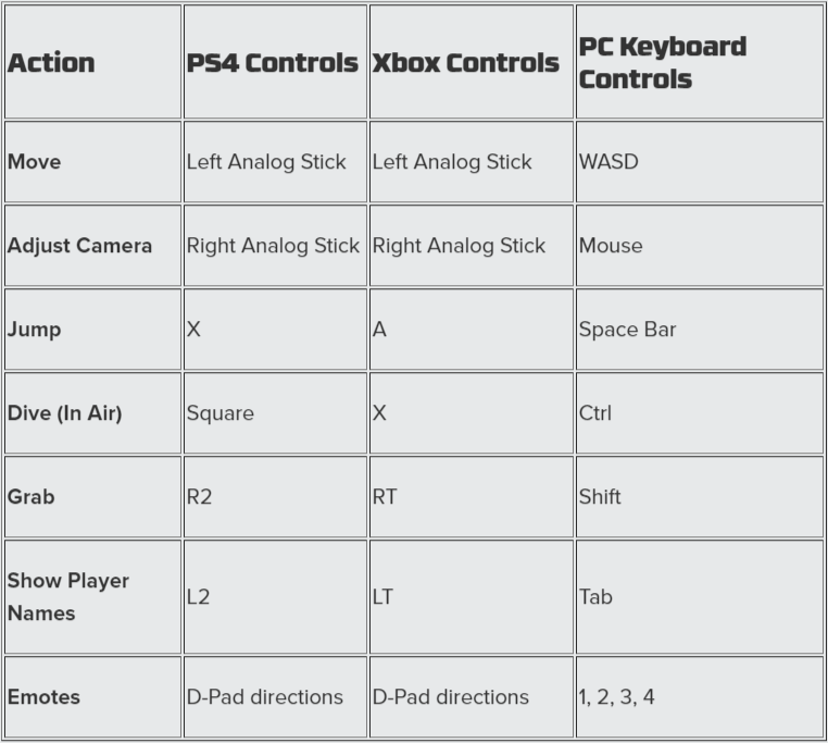 Fall Guys sticks to simplicity when it comes to game-play as well with just 5 action controls and 2 communication-based controls